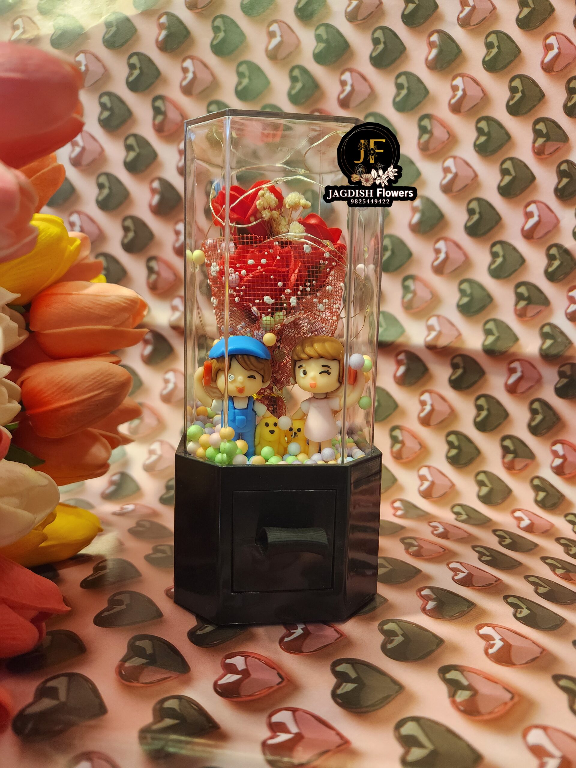 Couple showpiece with ring box and lights | BY JAGDISH FLOWERS