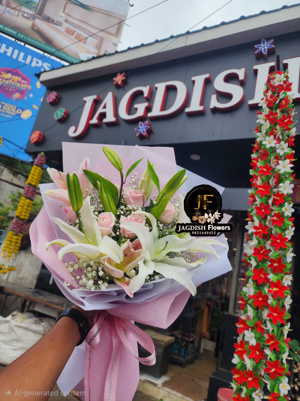 A Beautiful Bunch of White Lily’s and Pink Roses | BY JAGDISH FLOWERS