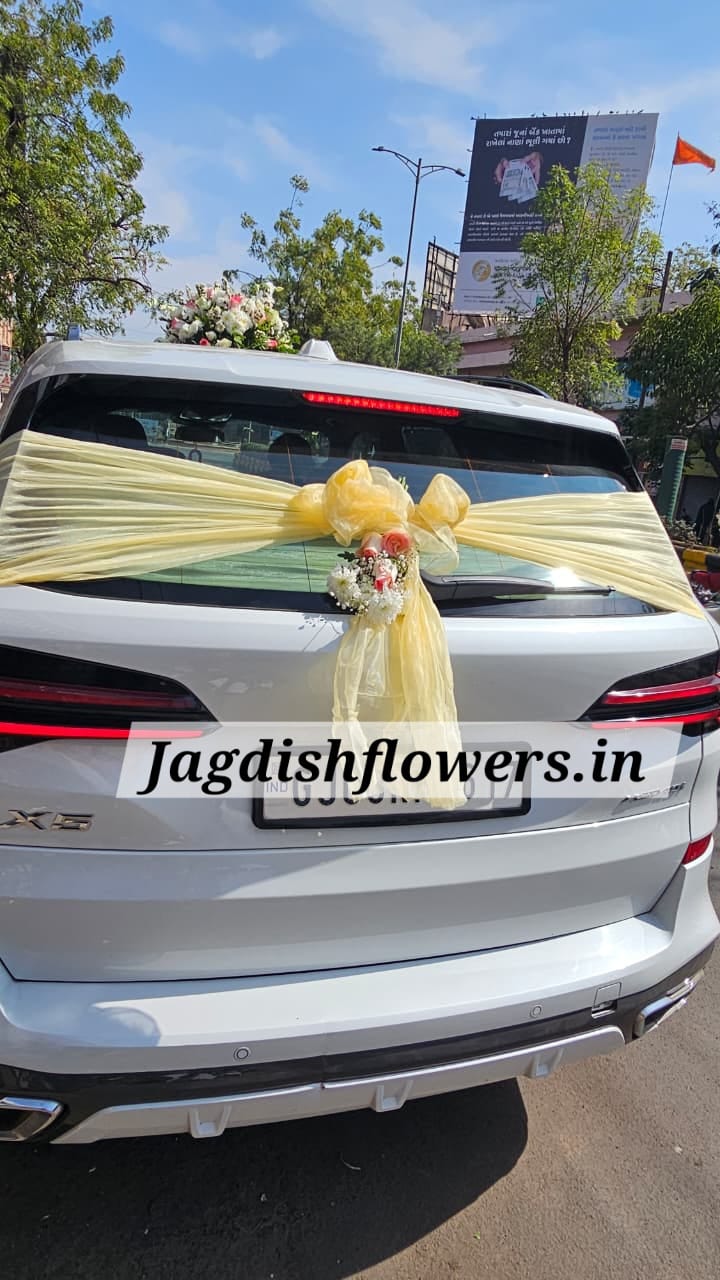 Exclusive White Orchids And White Roses & Jumeliya Roses Car Decoration | BY JAGDISH FLOWERS